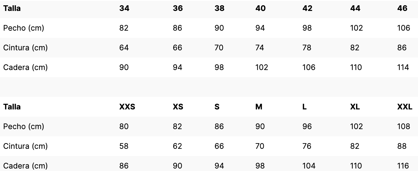 Talla única: Diseñado para adaptarse cómodamente a las tallas 34/XS, 36/S y 38/M, 40/L
